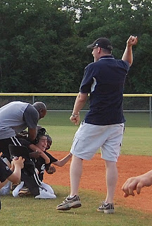 In the bottom of the fifth (the last inning in our league), our first batter grounded out. The next batter hit a single. The third batter hit a great grounder into center field. The ball was thrown to the second baseman and our base runner toyed with him just long enough to let one of our guys round third and score.It was all tied up when Wesley got up to the plate. I was pretty nervous. Our assistant coach was out and he asked me to cover for him, so I was coaching first base. Standing just off first base gave me a pretty good view. I could see Wesley’s face.